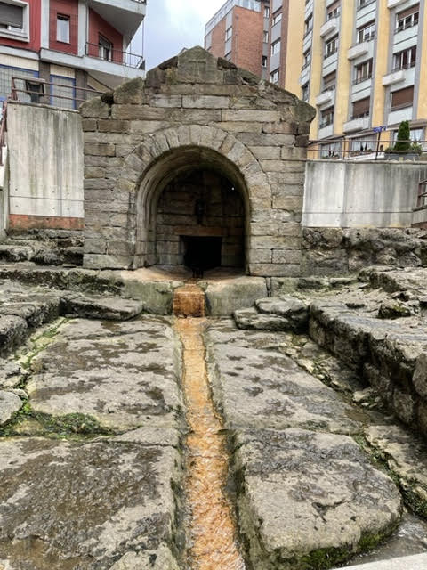 This is the Foncalada Fountain built during Alfonso III the Great’s time. Pre-Romanesque architecture and has an inscription on it that was common at that time, “With this sign the pious are protected, with this sign the enemy is defeated. Lord, place the sign of salvation on this fountain and do not allow the striking angel to come near.”