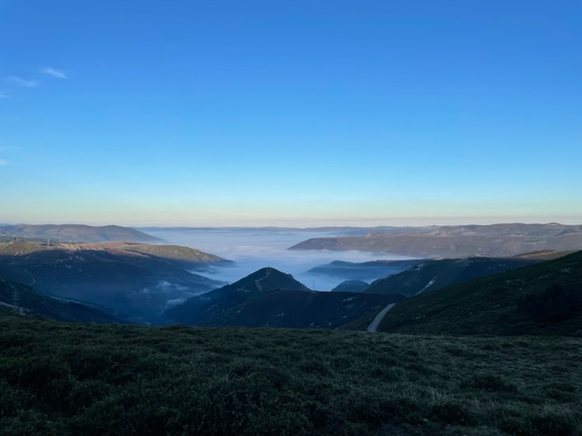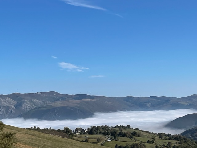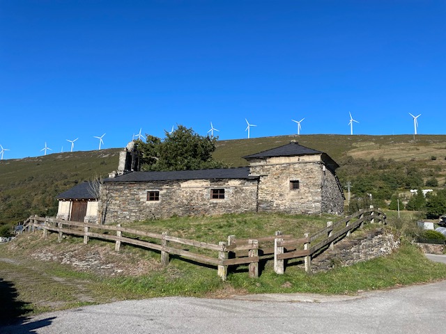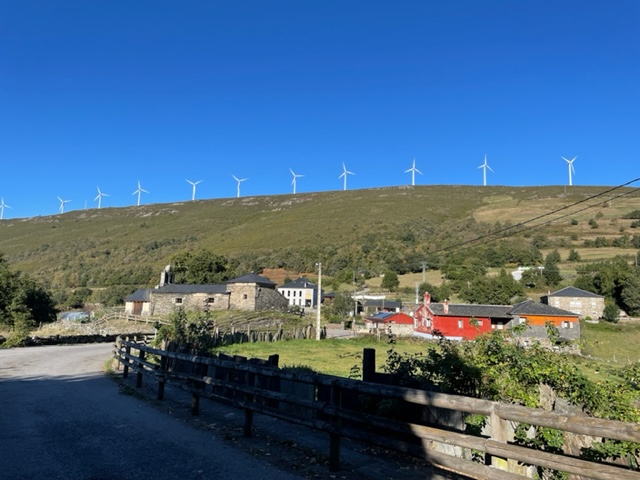 Coming into La Mesa, these windmills are on many of the hills and they get a lot of their electricity from them. Good thing because the hydro plant was definitely dead. Getting to it later. There was an albergue that had a cafe and Wise Pilgrim said there’s nothing else pretty much until you get to Grandas de Salime, so glad I stopped.