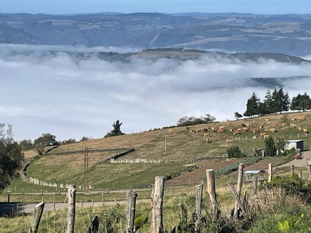 I had to stop by the side of the road to have a snack, I was listening to “House by the Cerulean Sea” a fantasy book recommended by Kaziah and Eli C and suddenly I was off the road that I’d been following into the sky, onto this beautiful path, that just got prettier and prettier. I was definitely in an altered state and when I saw this pretty little town emerging after a long time on the trail, I wasn’t sure how much was book related. I turned off the book.