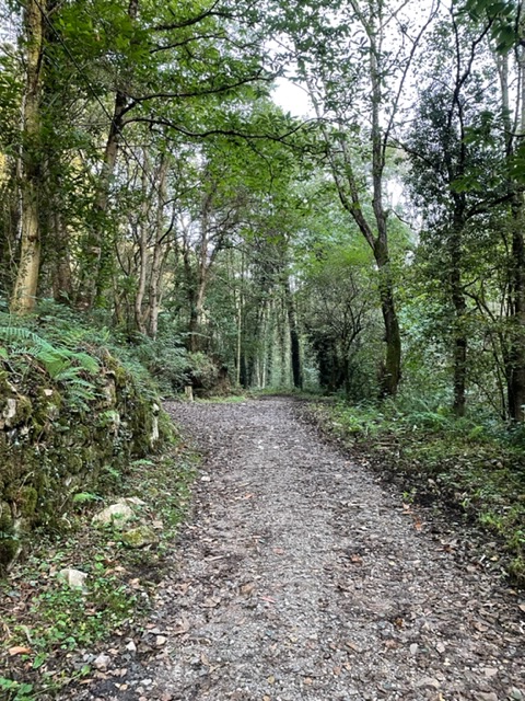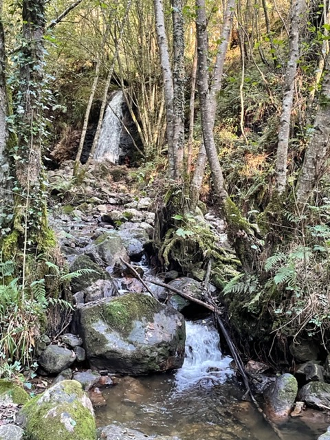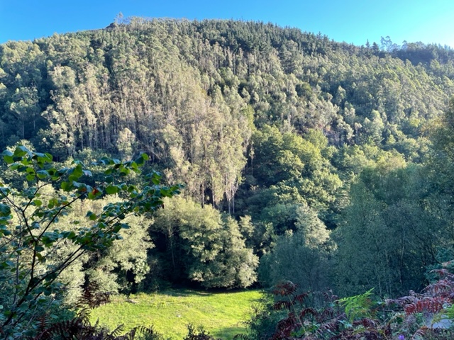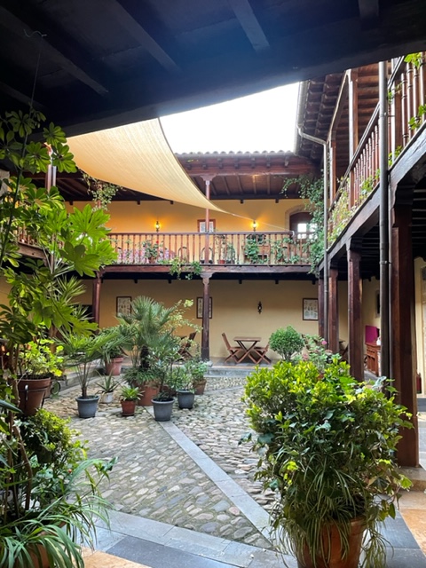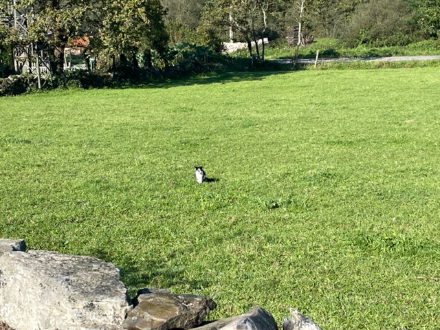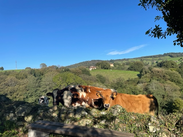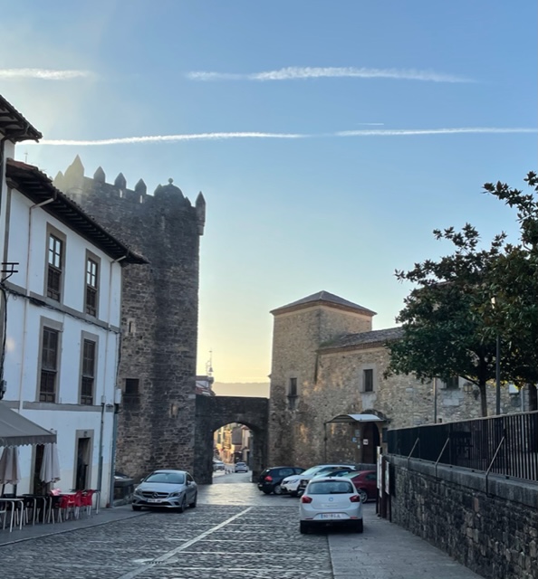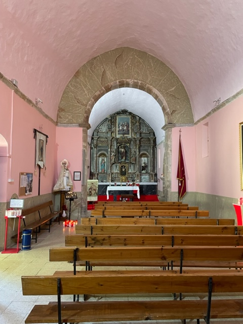 And this is the Ermitage of St. Roque, foundation from the 12th century, built in the 16th century, updated more recently. This little chapel has some big significance, but what? I don’t know. I’m missing my giant book that I carried last year and wish there was one for the Primitivo because then I’d know the story. Wishing that I’d bought any Camino Primitivo book at this point. I thought I could get enough from the internet, but it is either all in Spanish or very limited with just hints. I know that in this area, the priests got together and prayed to Saint Roque to spare them from the plague in 1572, but did it work? Have no idea. But sweet little chapel. And now I’m in Tinea. Small town surrounded by green hills and the big church is closed. So happily chilling in my room. And it’s nice! Another Palacio, evidently historic, though insides look modern to me, couldn’t find the history….there’s a bit of a theme here.