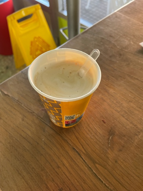 This was great. The only place to get a snack pretty much on the whole route was this little immaculate place with vending machines. They had decaf! And the cup dropped complete with drink and spoon ready for stirring.