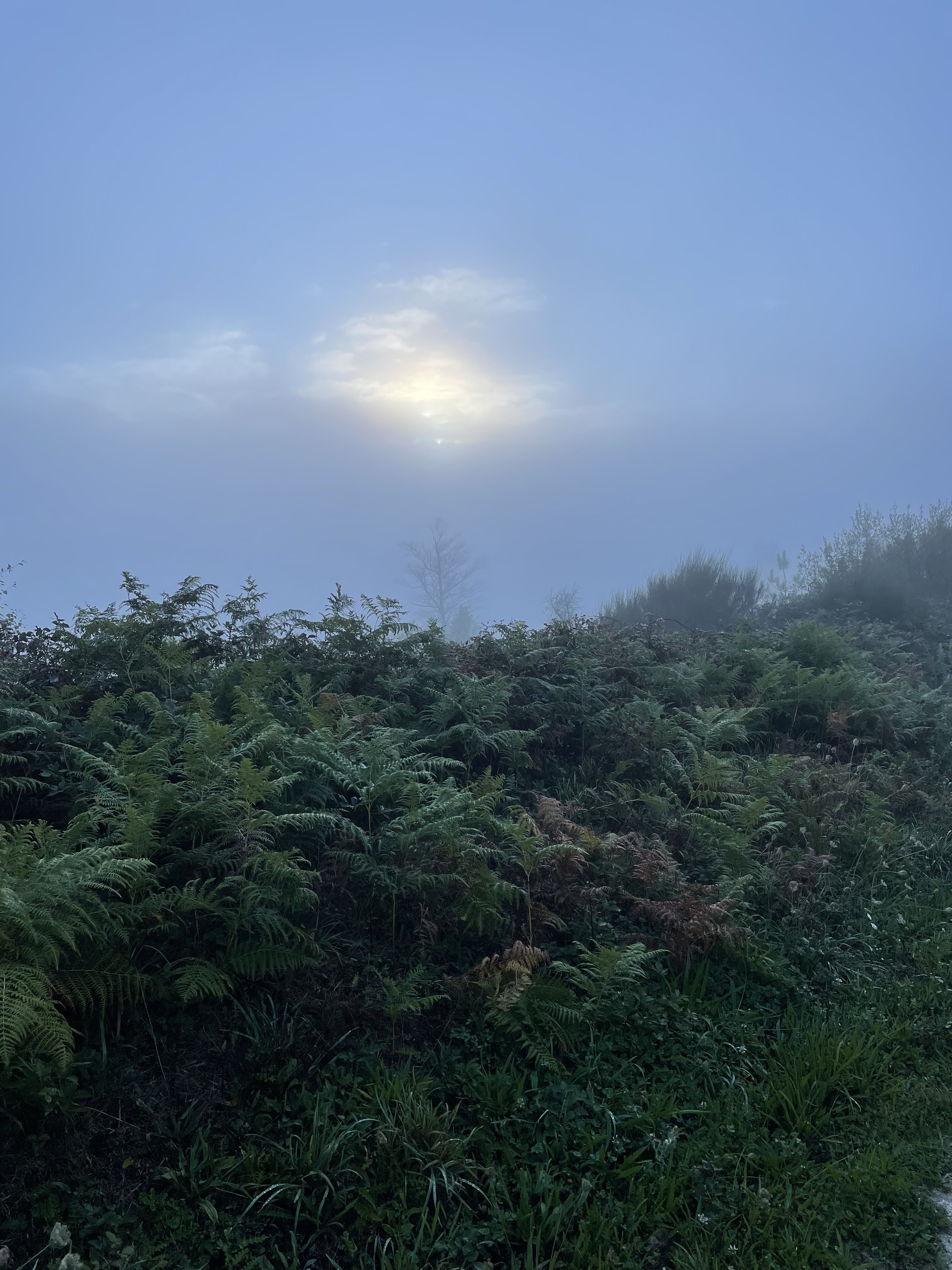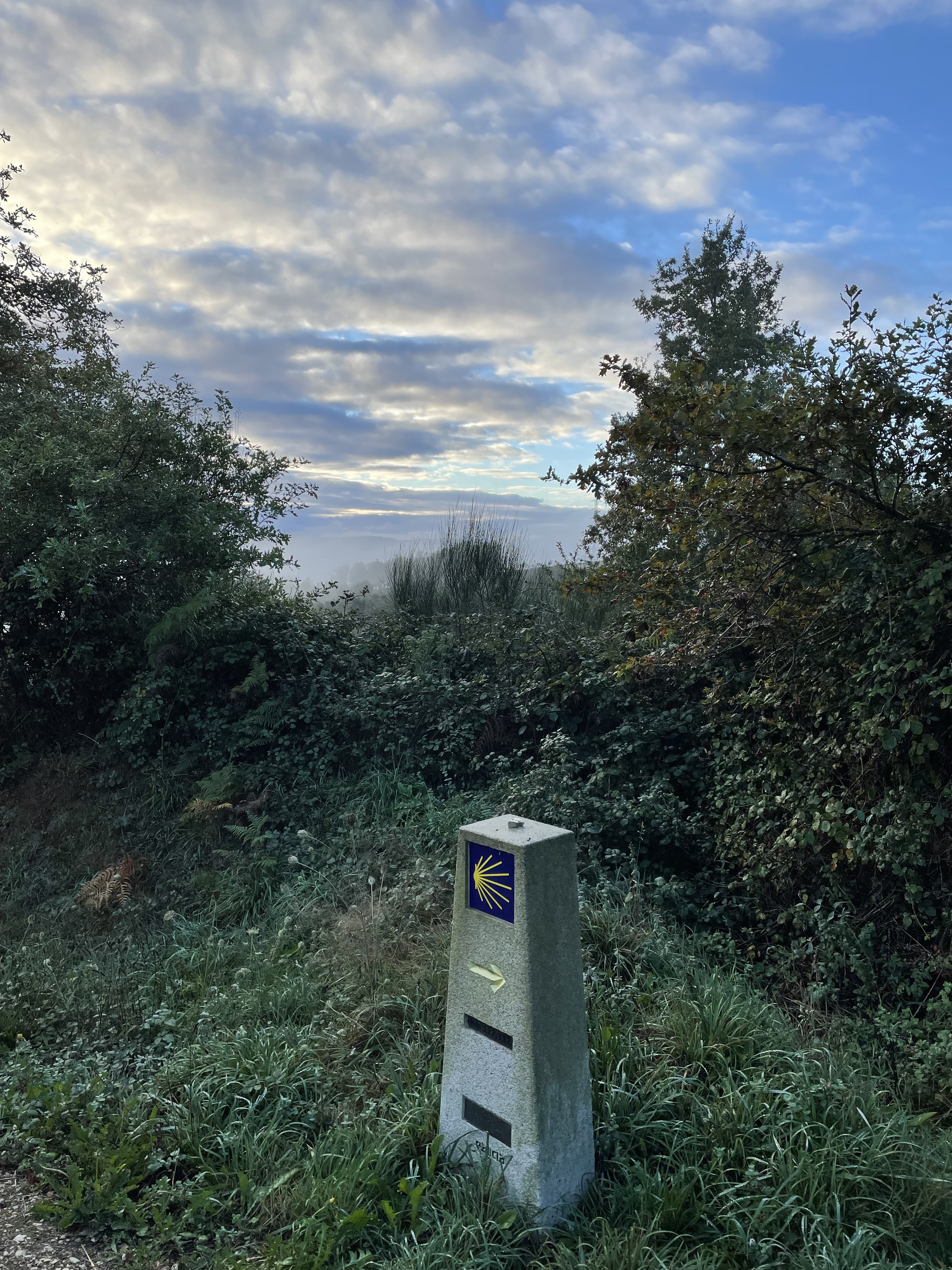 Walked into another beautiful misty country day, but no rain. The walking was also much easier with ups and downs and different types of trails, but not mountains or steep pitches.