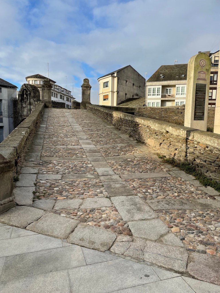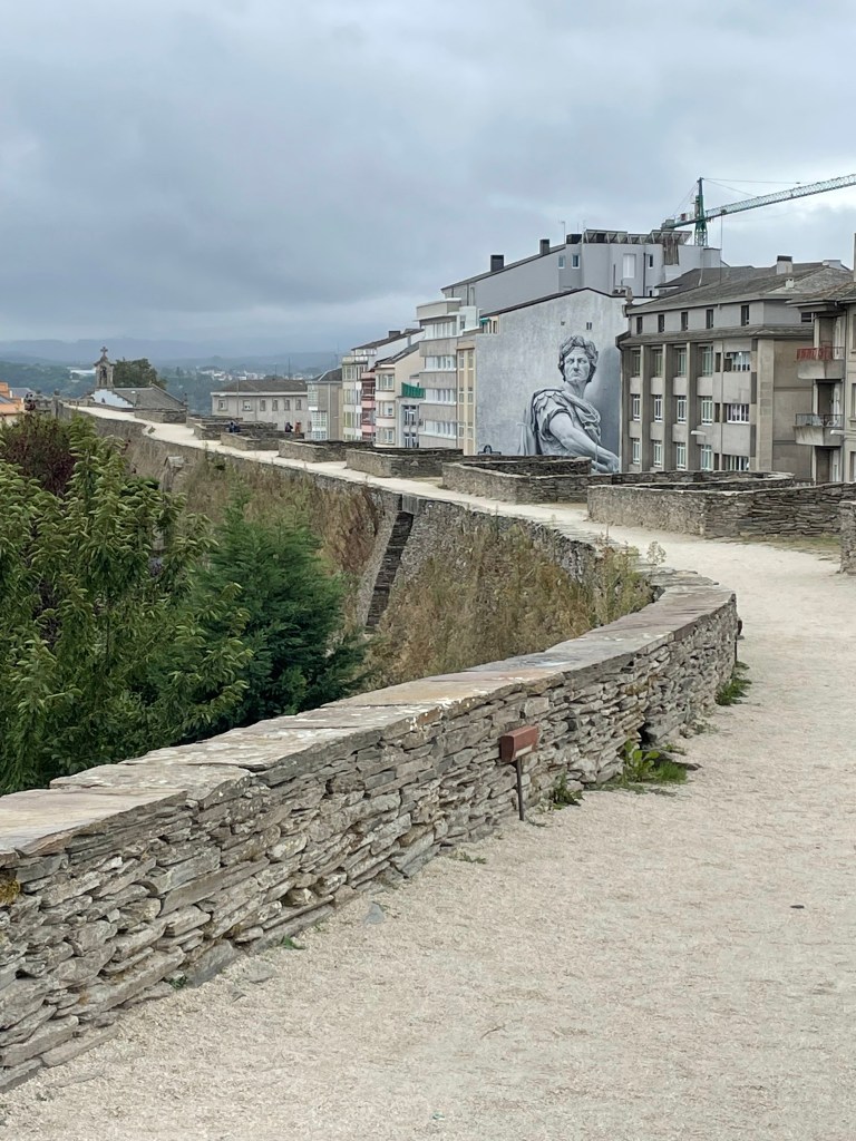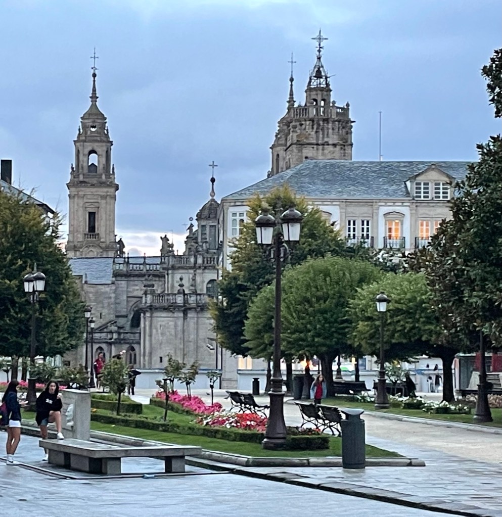 I walked down to where the Camino left town – the walled city really is at the top of a hill. As soon as you walk outside the wall, in any direction, it’s headed downhill and towards 1 of 3 rivers depending on your direction. As I was walking back up the hill, I ran into 1 of 2 fellow Americans who’ve been on the trail these past days. John was hoping to connect with someone who might have found his glasses, but said they weren’t that needed and he’d rather join me going to the service.