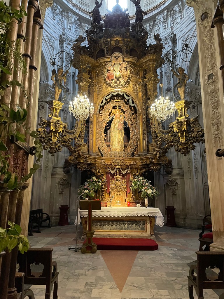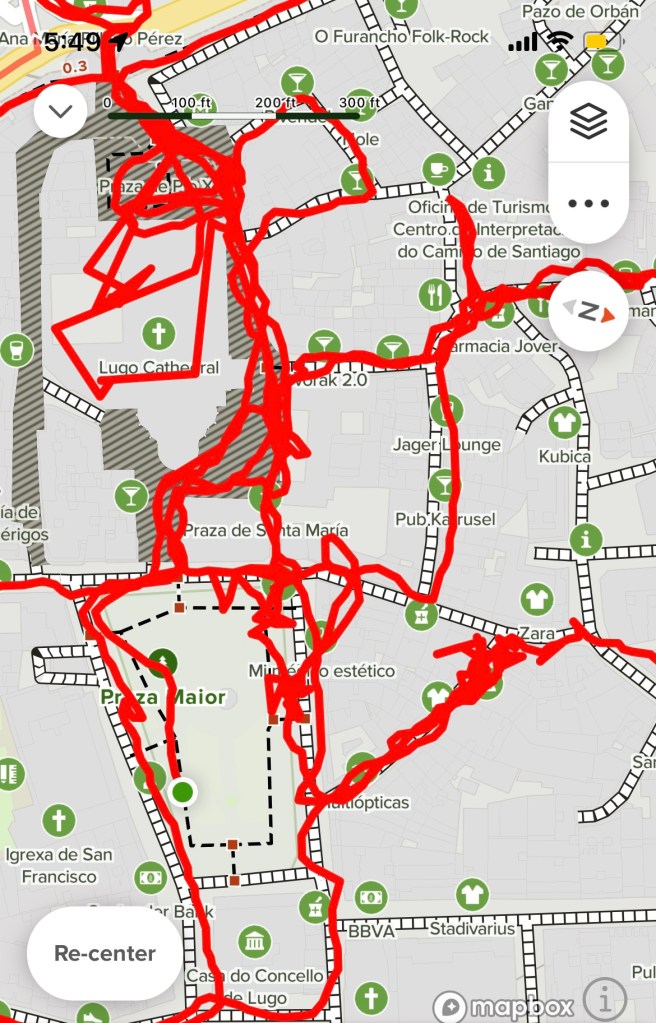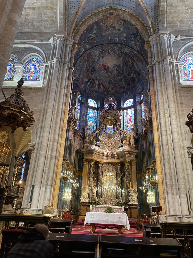 John’d gone to service the night before so knew where to go – it’s a giant cathedral with many spaces and he set me up here, at Our Lady of the Big Eyes (Mary, just FYI). She’s revered in Lugo, is the patron saint, and the tabernacle in the altar holds the Blessed Sacrament and this has been continual for 1500 years, starting with the Romans.