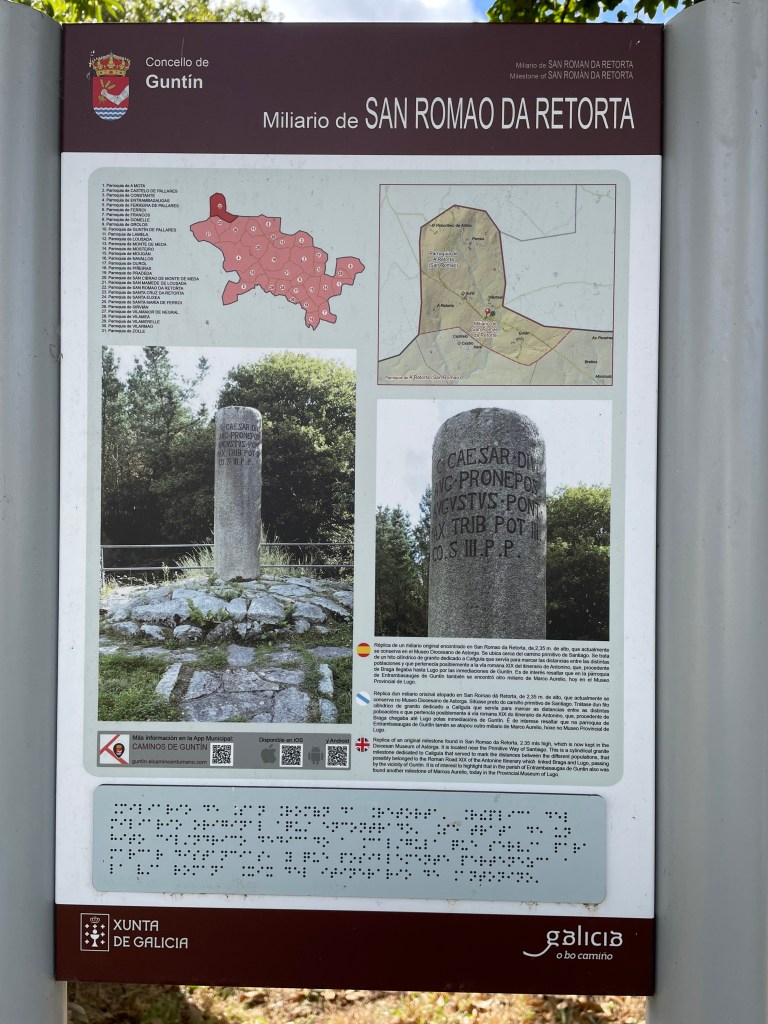 Yep, hitting tired here. Forgot to take the photo of the object written about here. This sign is saying that the stone column is a replica of an original Roman milestone (it’s now in a museum), that was here, on the Primitive Way. This milestone was dedicated to Caligula and served to mark the distance between different populations. There was another milestone in the next town dedicated to Marcus Aurelio. People have been traveling these roads for a long time!