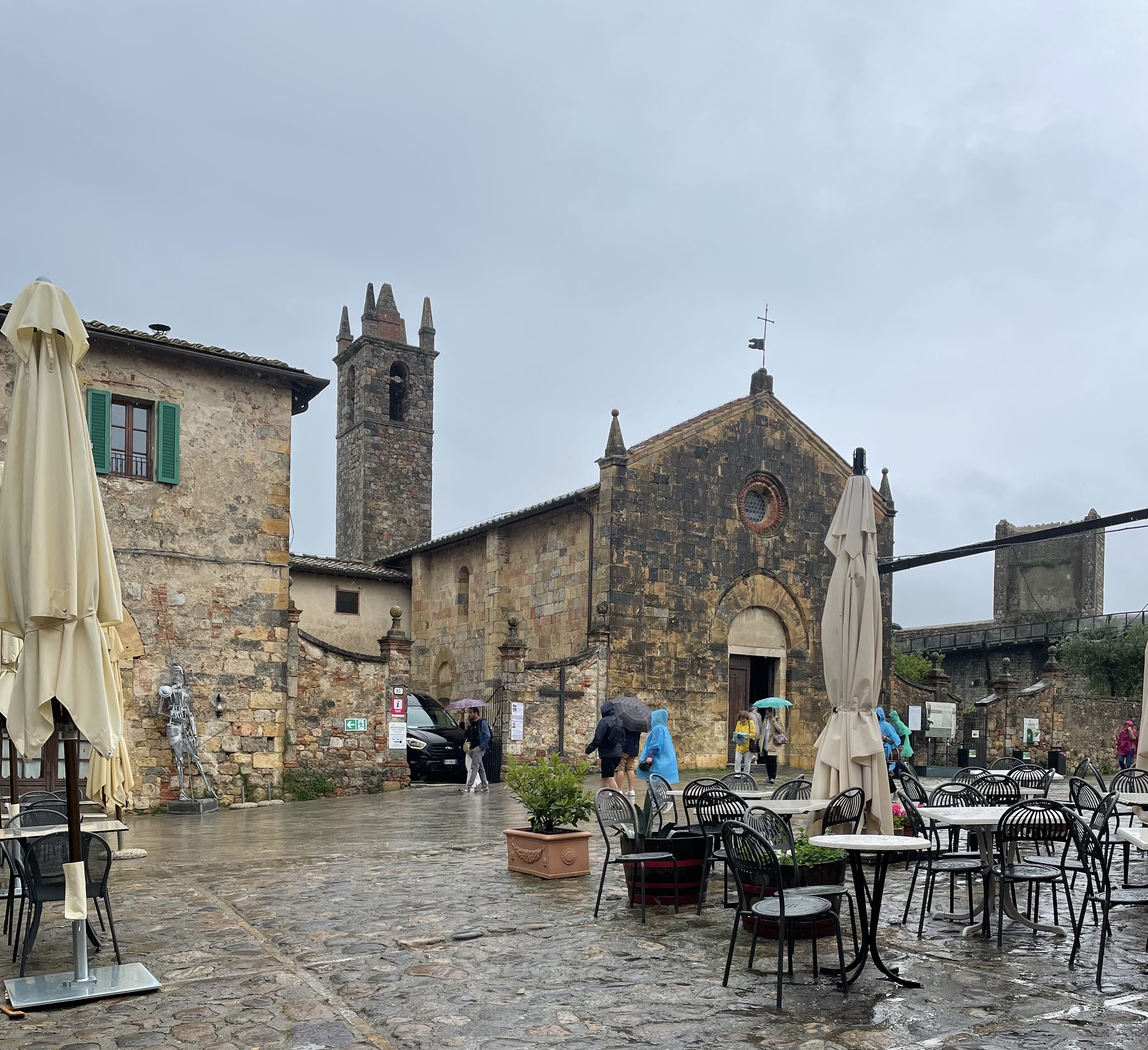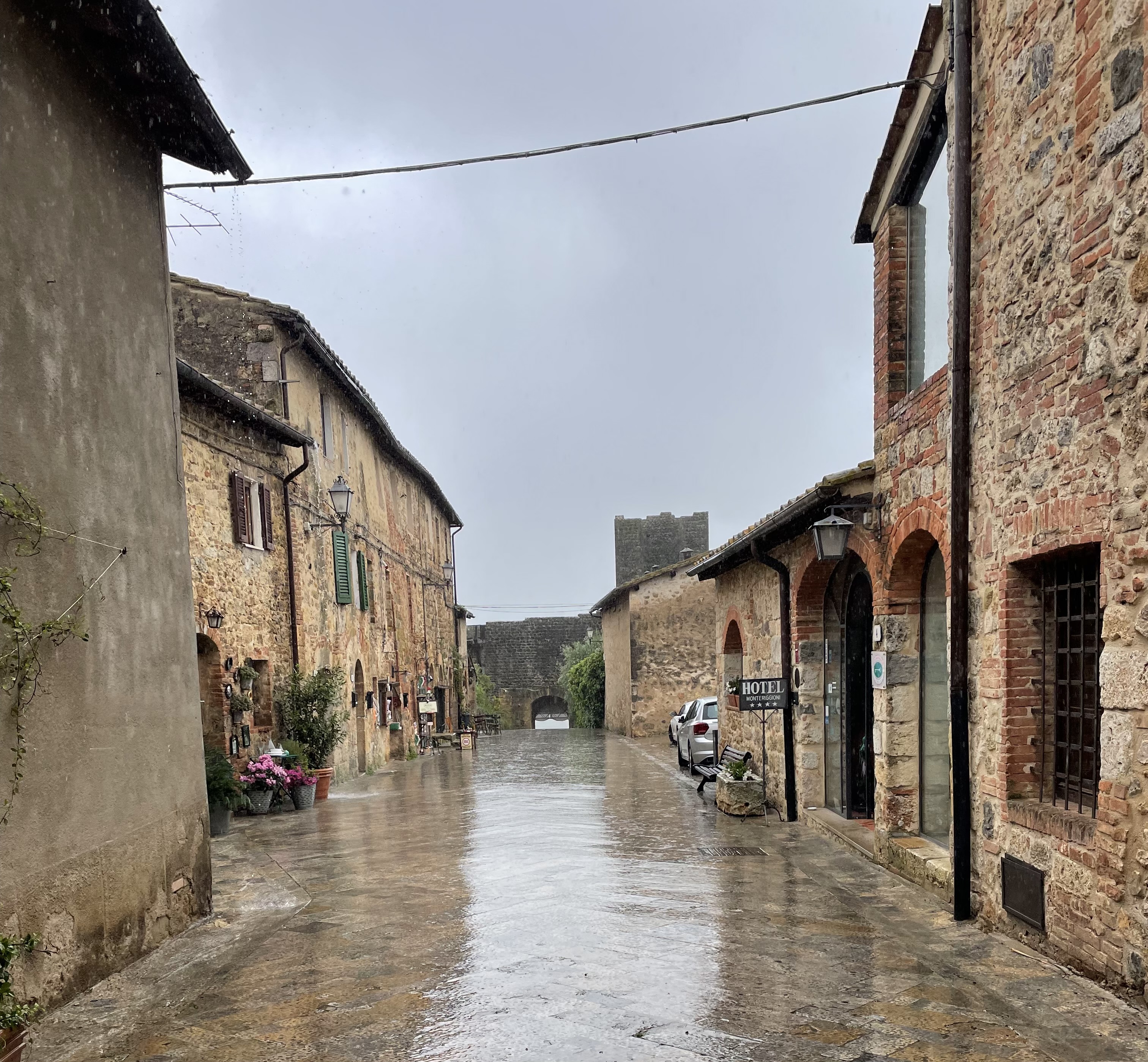 But first – somehow, I didn’t include photos of the town of Monteriggioni yesterday. The first was the 13th century church, then the village in the rain.