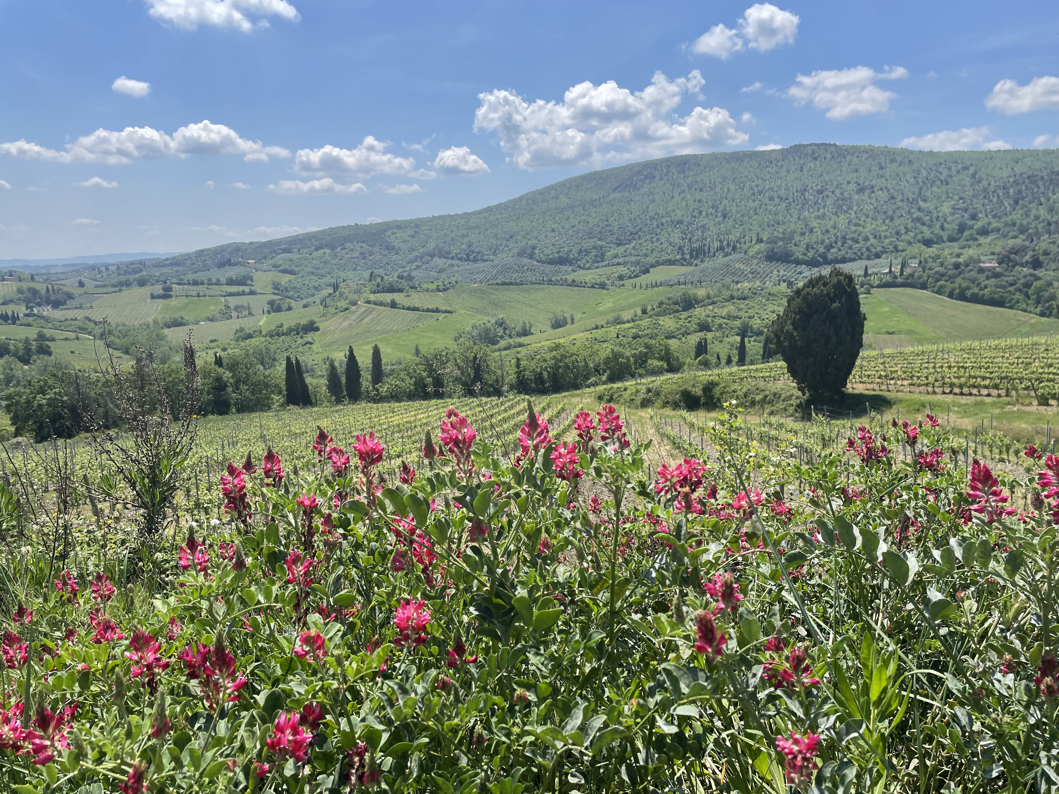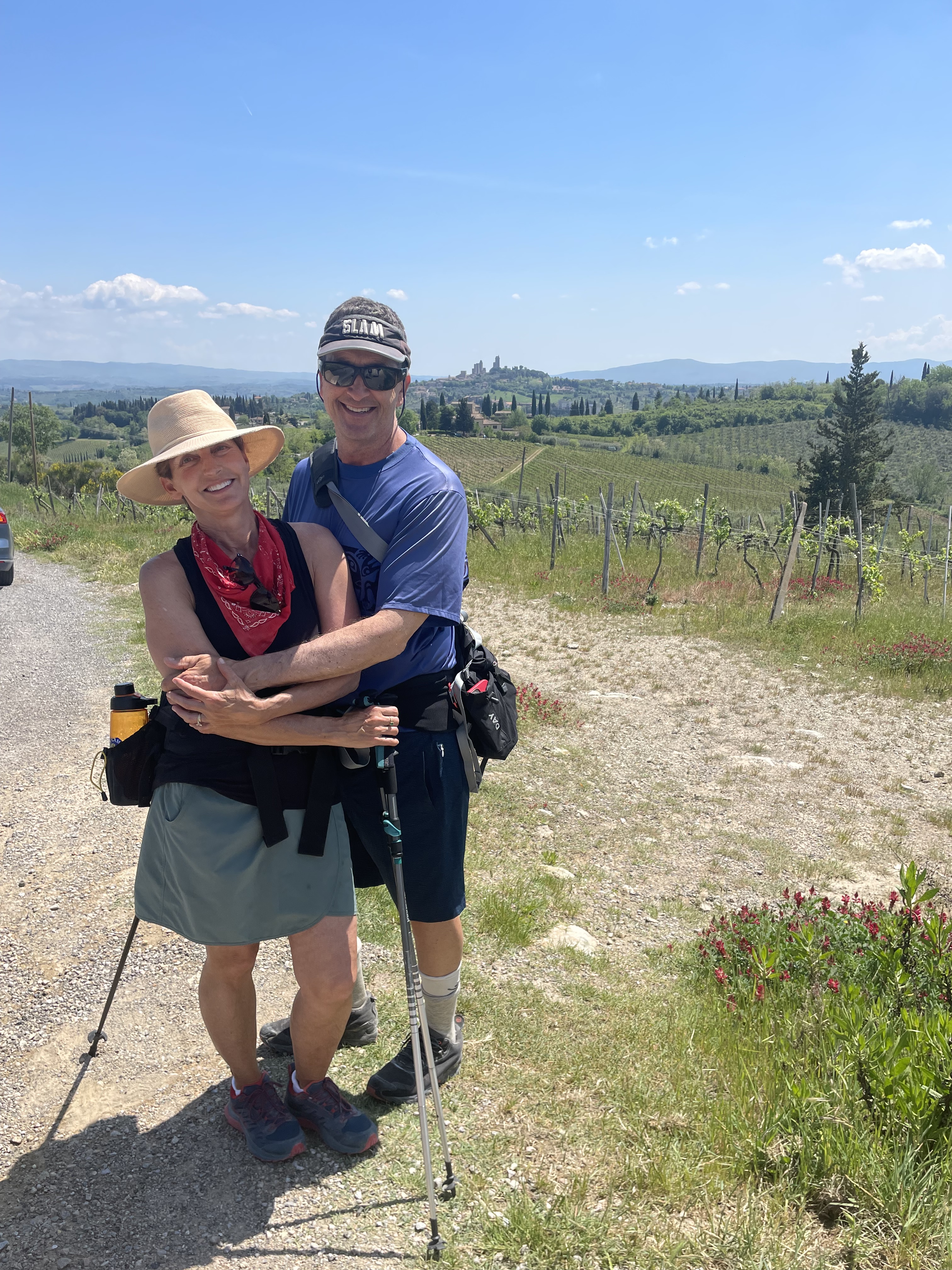We were supposed to do 9 miles today, but started off a little differently. We did a full circle of Gambassi Terme, ending up back in front of our hotel. Another mile. Huh. So we all stopped talking for a bit and starting paying more attention. The VF has more signs for norte than the Caminos. Probably because the first pilgrimage by Sigeric was from south to north. That’s just a guess. But we did a circle of north and south VF signs. Found the right way, then we were off!