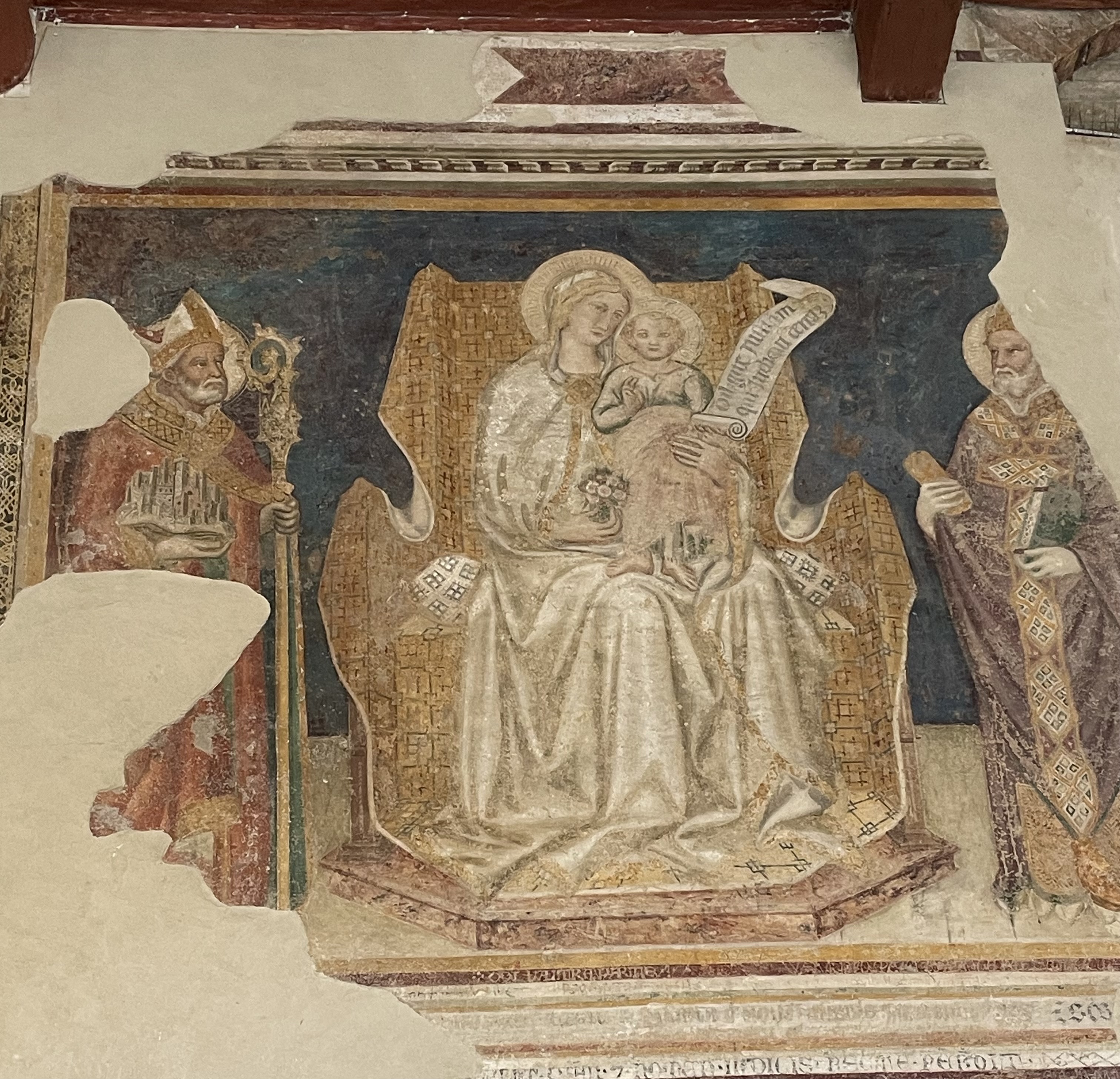 It’s amazing because there are original paintings outside that they’ve preserved by removing, securing to a fiber glass support and putting right back up. Without a cover! The painting below, Virgin with Child, was painted circa 1370 and was outside in the patio below.