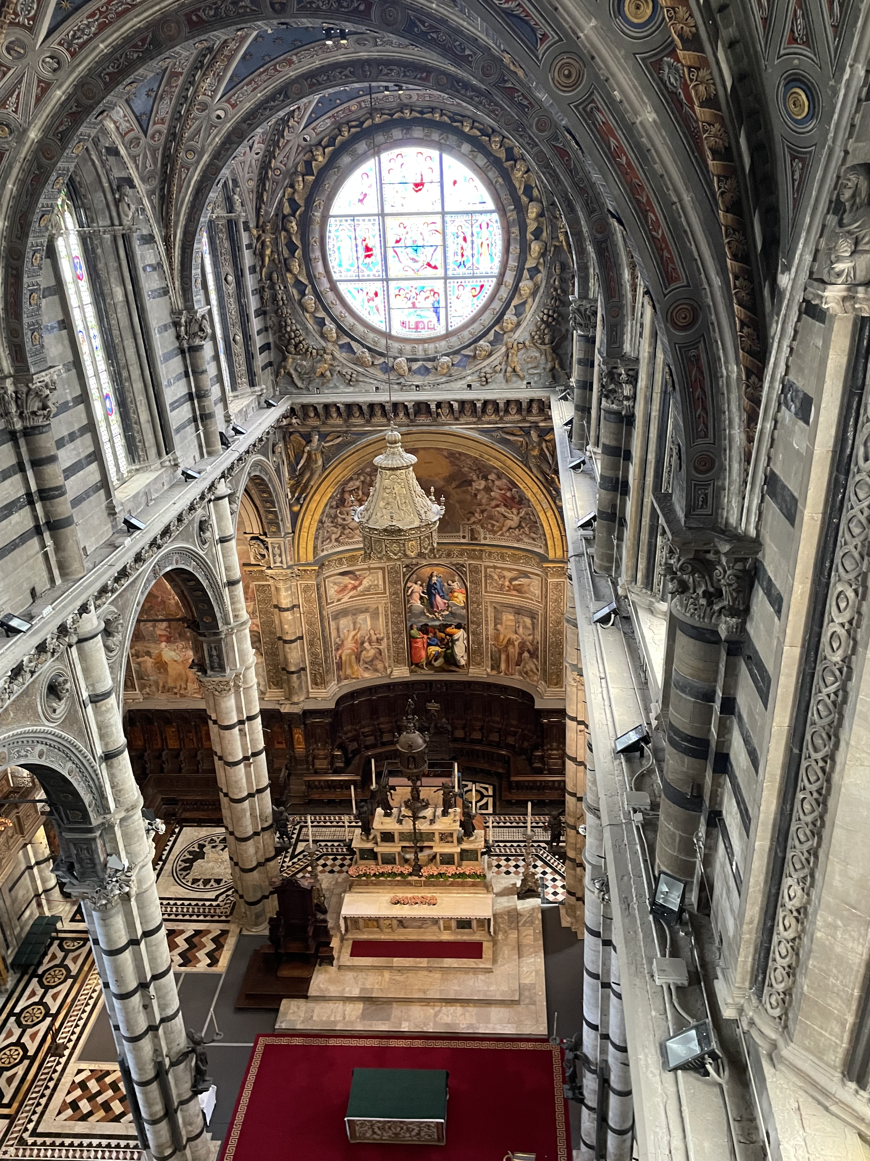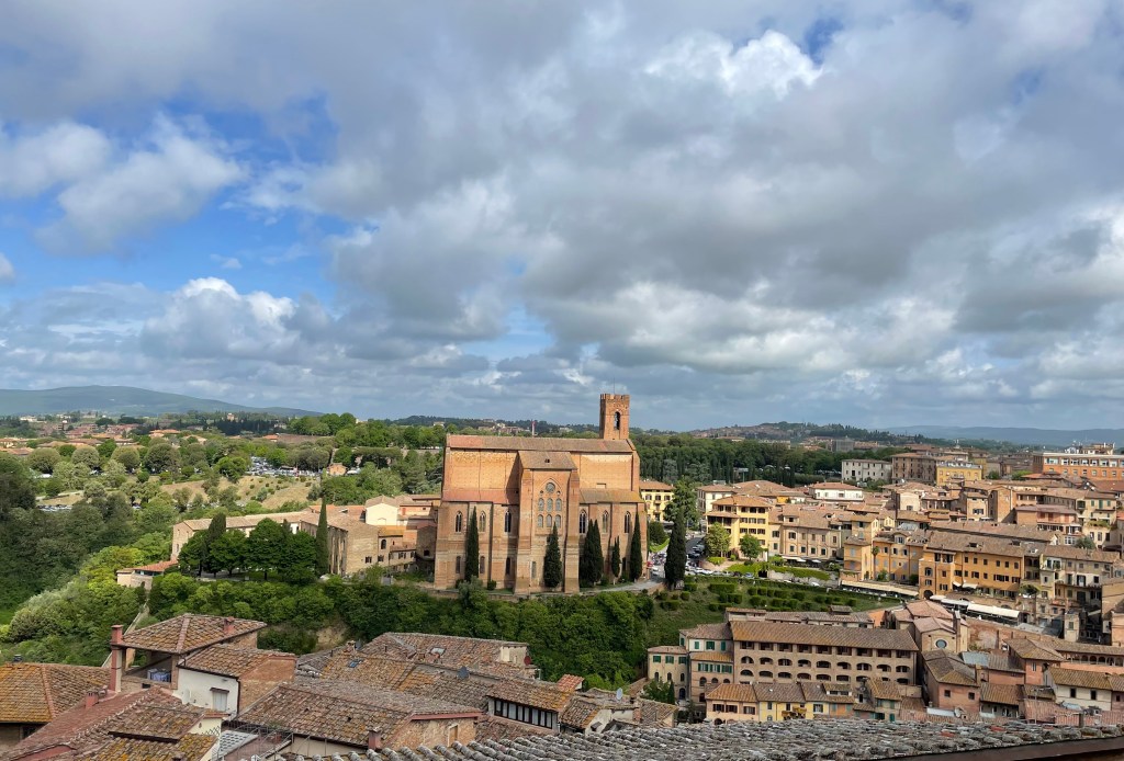 Siena was strong and mighty and flush until the black plague hit in 1348 and they never recovered. Luckily, they were not hit in WWII, only Sienna and Venice were spared, so Siena is a wonderfully preserved medieval town, as seen from the roof of the Duomo.