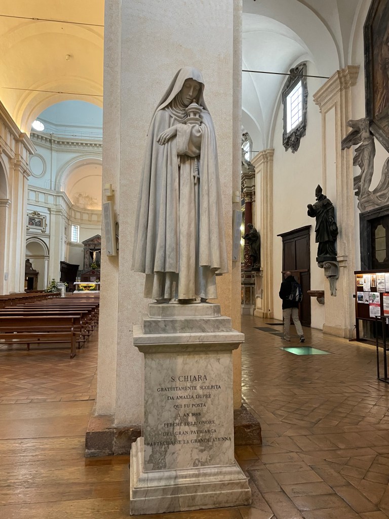 When you walk in, the first thing you register are the two statues of Francis and Clare. So here are the stories of the two.