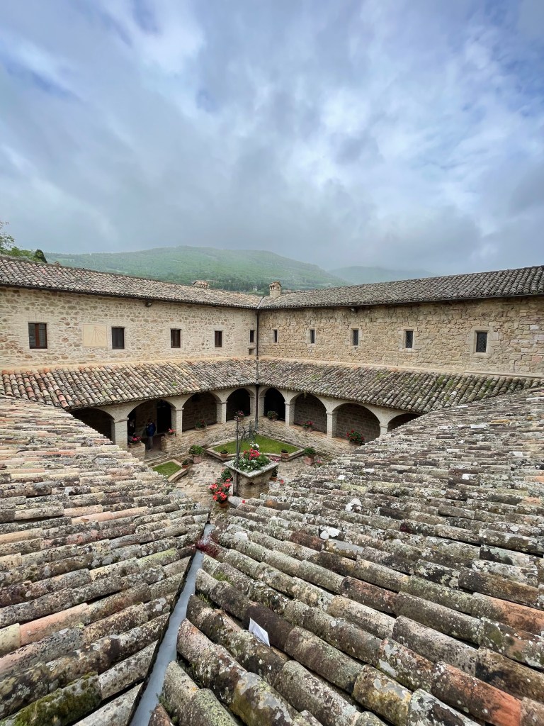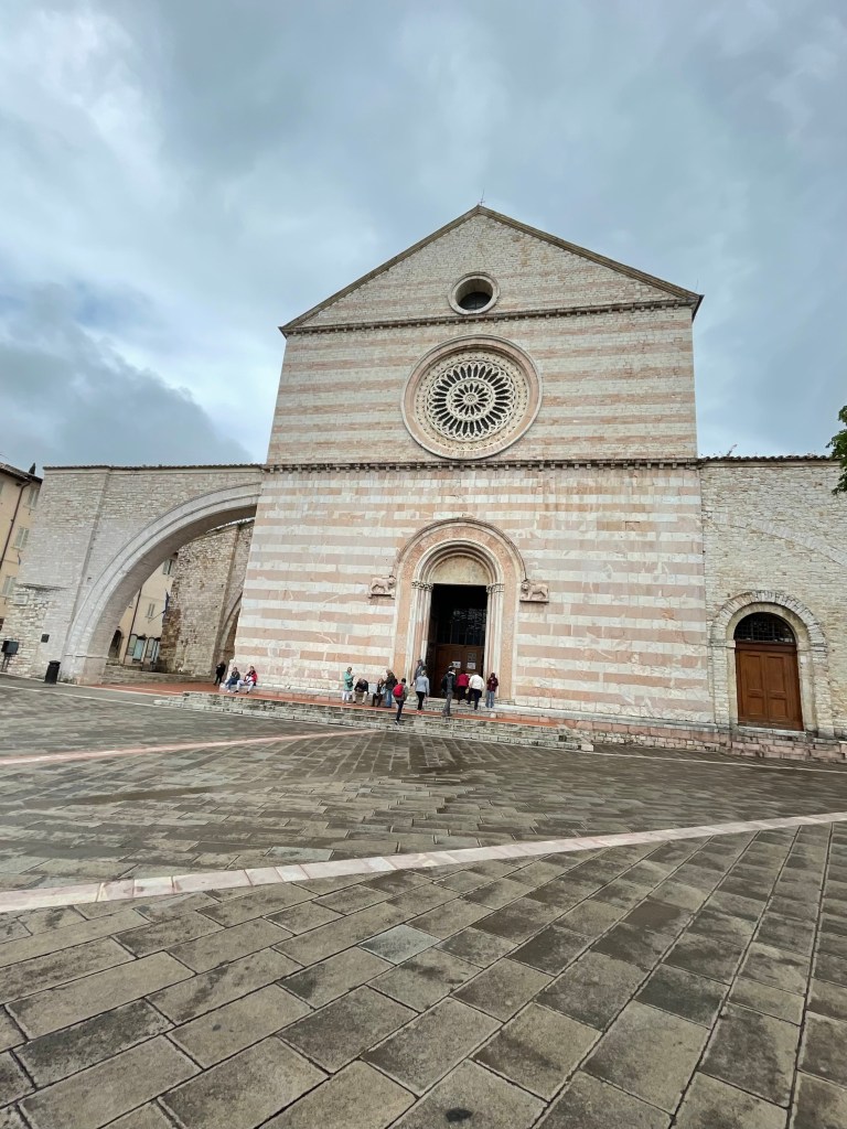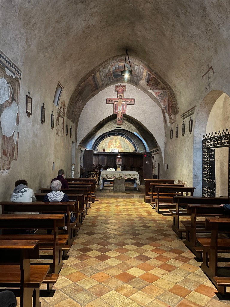 But back to Assisi. I think the reason that this cathedral and the stories had such an immediacy was because both Francis and Clare were born and died in Assisi and had a huge impact on their communities and far beyond. They were so revered in their work and commitment to Jesus that Francis was made a saint 2 days after he died and the Basilica was started the day after that. So when they say they have relics and robes – they really do.