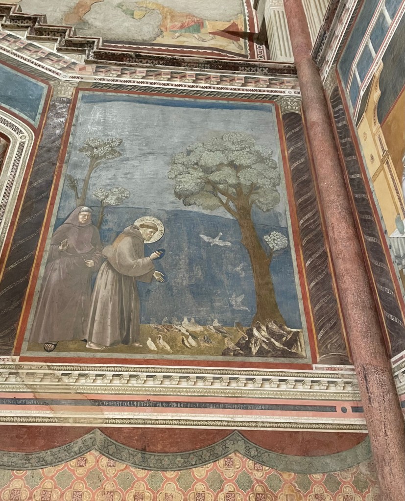 One of the most famous of the frescoes of St. Francis “Sermon to the Birds” – alludes to the truth that all are welcome, all are able to hear the message of Jesus’ love. Tradition has given to Giotto, the best-known naturalistic painter of his period, the authorship of these works, or at the least, the credit for having designed them.
