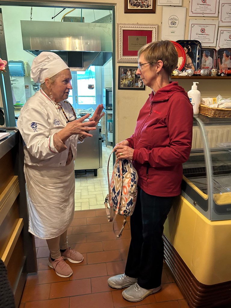 We had a HUGE lunch and relished every bite. Many different flavors and we tried a lot of different dishes. Cathy was given a very large glass of wine that she felt terrible about because she rarely finishes a glass, and certainly not one this size. But it was ok because the owners loved chatting with her.
