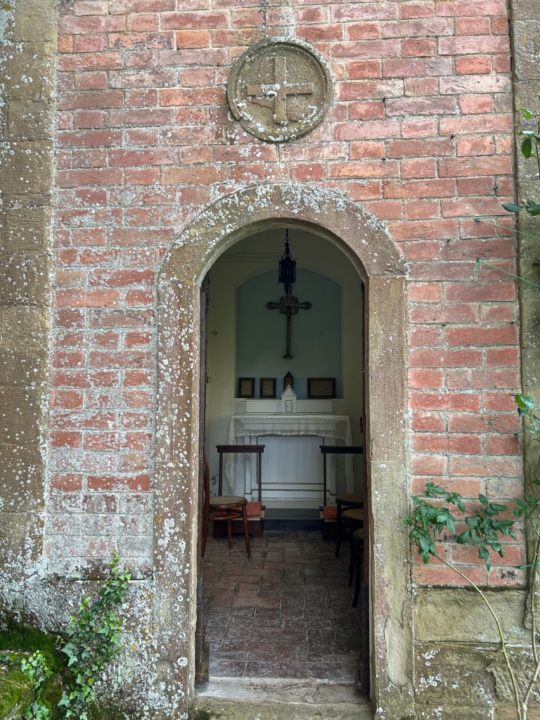 Then home, showers, laundry and reading/writing. In the early evening, the caretaker came and opened the chapel so that we could see it. Very small and sweet and actually cool to see what a place like this might have had for a family chapel.