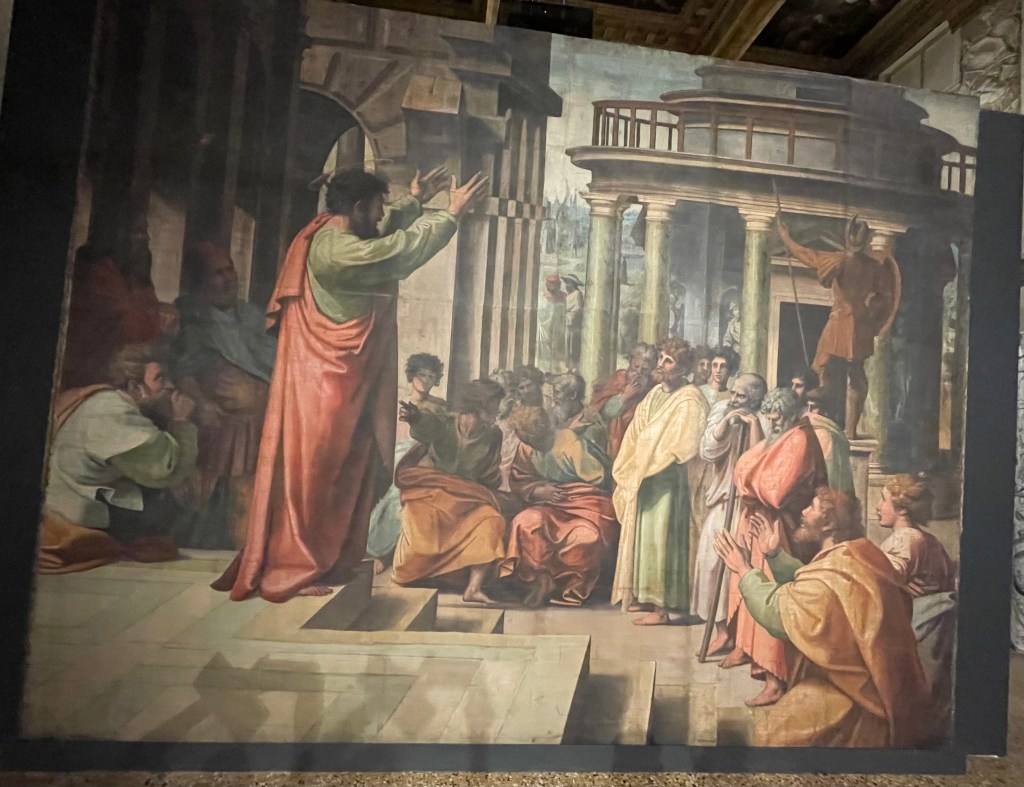 Palazzo Barbarano, the Palladio Museum was wonderful. There was a current exhibit of Rafael as architect – and yes, the same Rafael that we think of as a painter. Total reframe looking at one of his famous paintings and focusing on all the architectural elements.