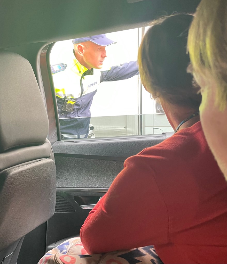 Aaaoouuut! Aaaoouut! Only pedestrians! Yep, repeat of Sienna. Needless to say, hilarity was reining inside the car. The first person we saw as Leaf drove into what turned out to be the MAIN pedestrian area between the town hall buildings and the university, both from the 1200’s, was a woman who ran toward us, but also was laughing. She stopped us and then ran to get a policeman who could speak a bit of English. Sharon was quick to grab my phone and get photos. I was laughing too hard to think about it. Those words above were the policeman’s. But he too, was smiling and directing. Leaf had to do a u-turn in the same area in the drive of shame back to the street that would lead us out.