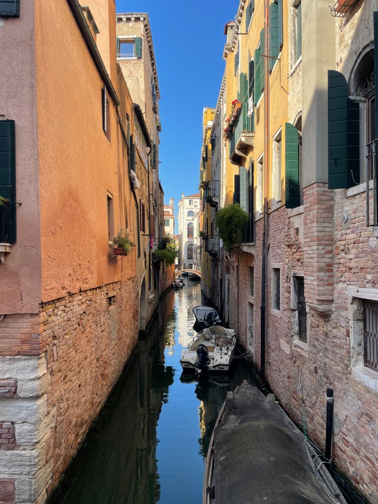And then – Venice. Oh, how lucky am I to get to finally see this magical water city with Rick and such great friends. And we had 3 nights! Our water taxi (I’d call it a boat) brought us to the campo San Giacomo dell’ Orio. We got out on the dock area, walked over the little bridge – our first of many – and our apartment was in the first building on the right. The gentleman who was meeting with us to get keys was right there, so easy! Our apartment is neat and clean, on the 2nd floor with windows onto a little courtyard complete with well and other windows overlooking the canal. Low timbered roofs and a bit of up and down to create 3 bedrooms. Just enough to stumble on 🙂 I’m guessing it’s VERY hard to have modern conveniences in many of these apartments, so felt lucky when we saw ours. Plus the host has been beyond helpful in setting things up.