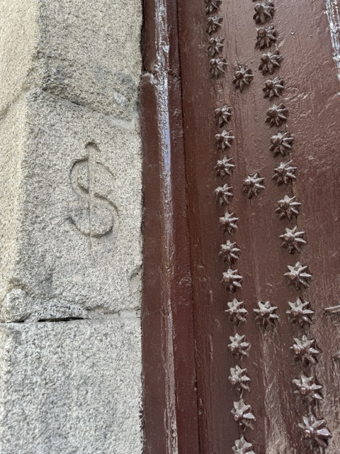 This is the symbol of slavery in the doorway of the Parish of San Ginés, we thought it was a dollar sign. But it’s an S for slave with a nail driven through it. Horrifying. And it’s on the other side of the church from one of the oldest bookstores in Spain – both connected to the church. One enlightened, one not.