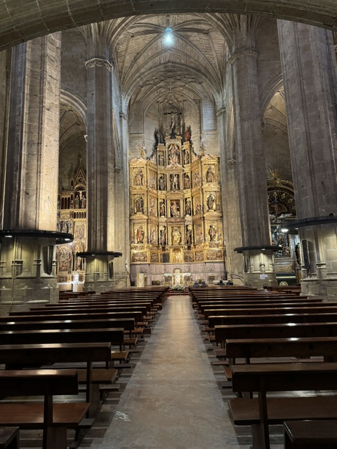 After the bike ride, we had the afternoon to chill. I went back to the earliest cathedral – built in the 1500’s/1600’s. It was the cathedral for the Camino, had a shell and plaque about it’s place for the Camino del Norte, but no stamp. I’ve done a passport for the last 2 caminos and thought I’d go ahead and do this one, though I know I wouldn’t be finishing this year. But – no stamp. Strange and a first for me. But wow, it was gorgeous How could people build like this 500 years ago?