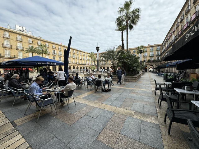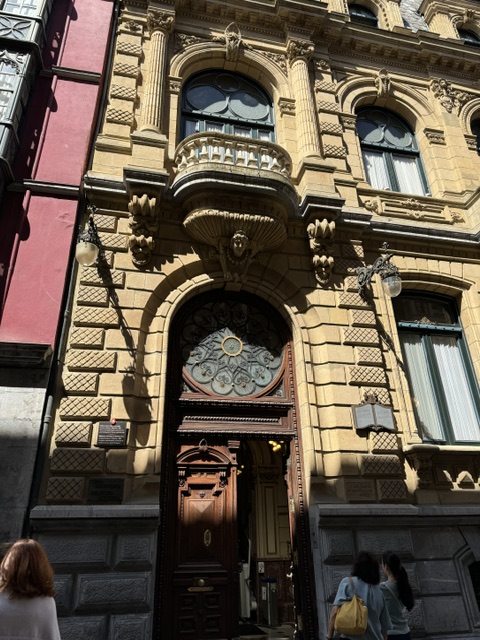 The train station is a point of pride and dependence – it’s where coal came in since iron and wool were the main products of the area. Built in 1898 and opened in 1902. Right now there are on-going political arguments with Madrid about having a high-speed train come to Bilbao. They’re trying to manage an explosion of tourism, while they want the tourists – a main source of income – they also absolutely want to insure their culture stays true to the Basque as Bilbao is the de facto center of the Basque region. The building on the right side is the conservatives club on going since the 1800’s. Very stuffy, very hard to get into.