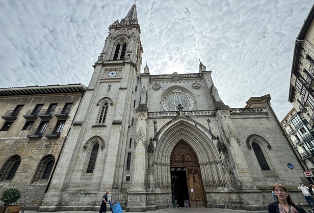 These steps are modeled after the Roman steps. This was the way the Camino came through Bilbao down off the mountain behind the town. The Camino del Norte connects to the Camino Primitivo. That one started in the late 900’s, the Norte started in the late 1200’s. There are 374 steps that wind up to a cathedral above where the Camino pilgrims would stop before coming down into town and into the Cathedral de Santiago, also on this path. It was also on this path that farmers would bring their market goods to town, down a long muddy path straight to the market. In the same place where we ate yesterday. They built these stairs to honor the Camino because it brought trade and money, and opened Bilbao up to the outer world.