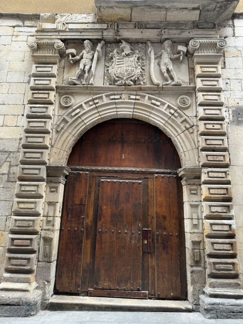 Here’s the shield again, at the top of the entry to the Church of St. Nicholas. He is the patron saint for sailors and this shows a desperate scene of widows with drowned husbands and men who’ve lost everything to the sea. The lions holding the shield up are demonstrating the strength and resilience of Bilbaoans who come back after every struggle.
