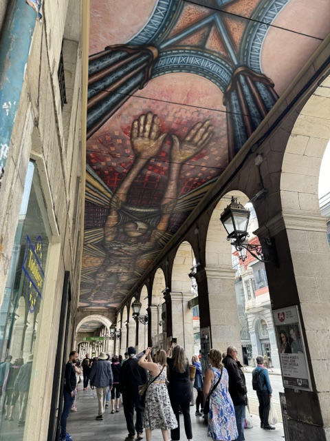 The building was in the arenal area – arenal means quicksand or marsh. They had to drain the area to build since it was two rivers coming together to form the estuary and big river. Because the land was so limited, there was only one small park to meet and it was the one place that people of all walks of life might meet up, though there were designated areas for each group within the park. This was true up until the late 1800’s. The whole focus was the iron industry, the steel industry and wool transfer, not on expanding park areas. Our guide said she grew up with smoke and soot, sounds like how Pittsburgh used to be described.