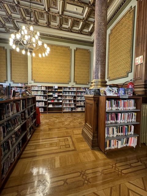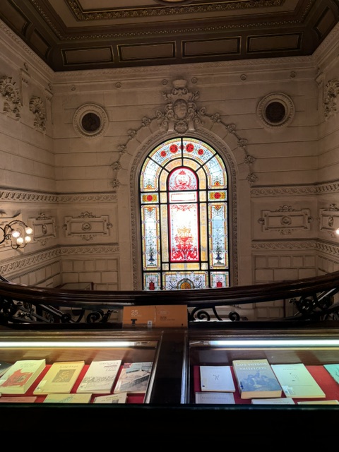 This last palace on our tour was the liberal club (versus the conservative club that was next to the train station). Over the door is a replica of the head of the Statue of Liberty. When Franco came in, he dissolved the club and took the place for his own, when he left, it became the library. The conservative club was more concerned about commercial interests and they held onto their building. I went back later to see the library. I’d study here in a second.