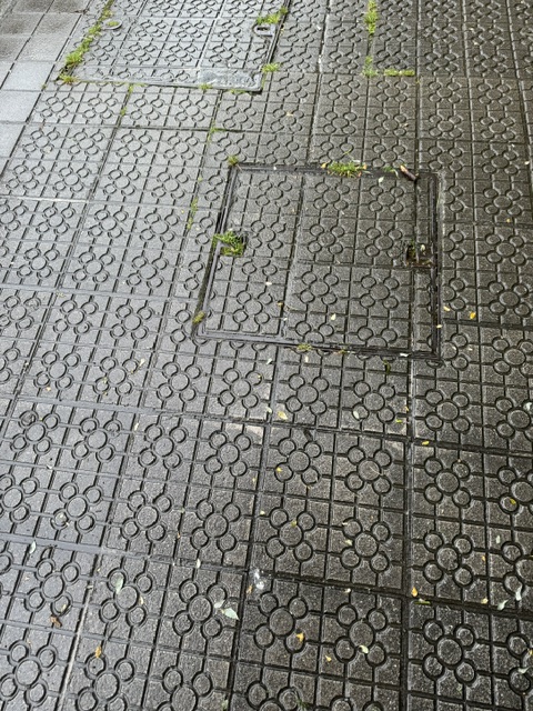 It’s this slow misty rain that just slicks, I was slipping and I had on hiking shoes with good treads. No wonder their sidewalks are patterned.