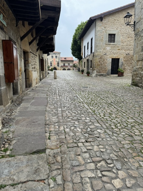 Then, total surprise, we came into the town Comillas and it was full of life. A bunch of stalls set up in the main plaza, a lot of people walking and talking throughout, a small tight town up and down the hills, but so much more active and lived in than a lot of the other towns we’ve gone through. And the buildings! My goodness, one gorgeous building after another. Evidently this became quite a heyday in the late 1880’s and people brought their architects with them to build summer houses and palaces. Mountains to hike in, beach just below on the other side of town.