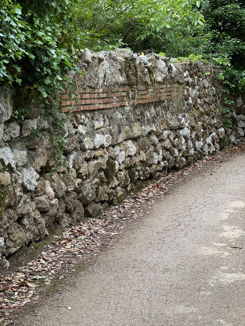 As I’m walking, just looking and exploring, I see things and stories just start. Like this one. Why the brick? Why there? Why stone after? And I can come up with whole stories of relationships, left overs made useful, so many possibilities because of an odd wall.