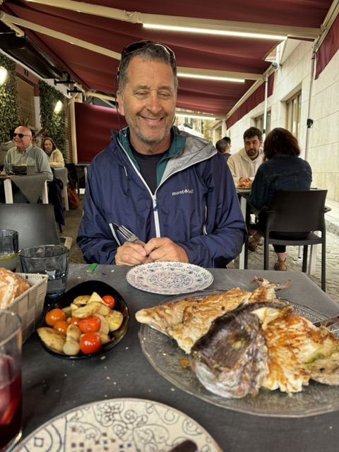 All I wanted to do was lie down, but I knew I wanted to explore a bit. I took a quick shower to try to revive and then we went out for a great lunch. I’m clearly becoming inured to the quantity of animals I’m eating over here. This fish didn’t even faze me. Rick and I both are aiming for pure veggies when we get back.