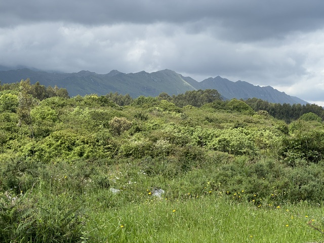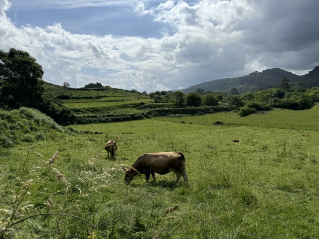 We were on our way by 7:20 and walked in wonder for an hour. Even though the first hill was immediate and Rick said it was like being given a double black diamond when you just walked out on the slope for the first time. But really, over quickly and wonderful with the cow bells, church bells, green all over.