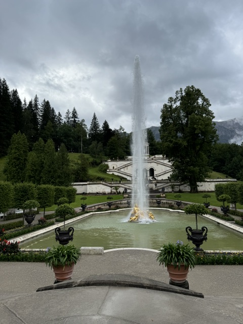 Today turned out to be really fun. Sadly, Holly and Flynn switched night for day and couldn’t go to sleep until 6am this morning, so there’s no way they could join the jaunt to Linderhof Castle, Oberammergau village, and Neuschwanstein Castle. And it was a long day so they definitely made the right choice. Tricia and I left the hotel at 7:30 and got back at 7. By the end, we thought it was wonderful.