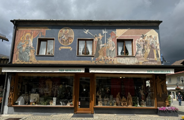 We also had a 30 min visit of walking through Oberammergau village between palaces. This village became famous during the plague in 1633. The mayor of the village was determined to protect his village and closed the borders. But a soldier from the 30 years war was so homesick, he was allowed to come home. He died within 3 days and then 300 people from the village died after him. They then decided to put on a play showing the 10 stations of the cross, a Passion Play, with everyone in the village taking part – 2,000 people as actors, techs, musicians, etc. They built a theater a few years ago that can hold 5000 people. Here’s the note from their website: In 1633 the Oberammergau villagers promised to perform the suffering, death and resurrection of Christ every tenth year, in so far as no one was to die of the plague anymore. The villagers were answered by God and therefore in 1634 the first Passion Play took place. The promise has been kept until today. The 42nd Passion Play successfully ran from 14 May to 2 October 2022, after having to be postponed in 2020 due to Covid.