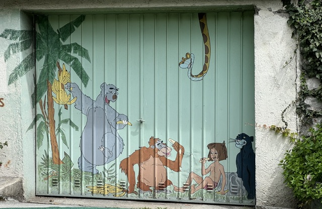The other thing the village is known for are the paintings on the houses; themes from Christianity and Grimms Fairy Tales. Unfortunately, the fairy tales were mostly painted on houses that we went by on the bus so photos were a challenge, but I walked a bit and tried to get some photos just to show the skill and details. The Jungle Book photo was on a garage of a house. The woman of the house was walking up the stairs and I asked for permission to take the photo and she was so pleased and said yes! It’s 30 years old!