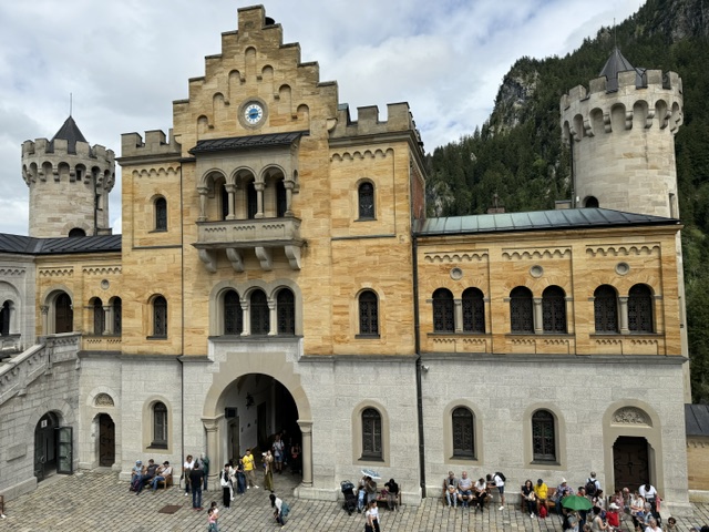We learned a lot about Ludwig II, the 4th king after Germany became a monarchy in 1805. King Ludwig II adored his grandfather, Lundwig I, who built beautiful buildings and bankrupted the country. Then Ludwig II came along and loved building just as much, also nearly bankrupting the country. He won a war against Prussia, but that was very much an interruption in his studies of architecture, art, philosophy, science, etc. We were told he read a book a day.