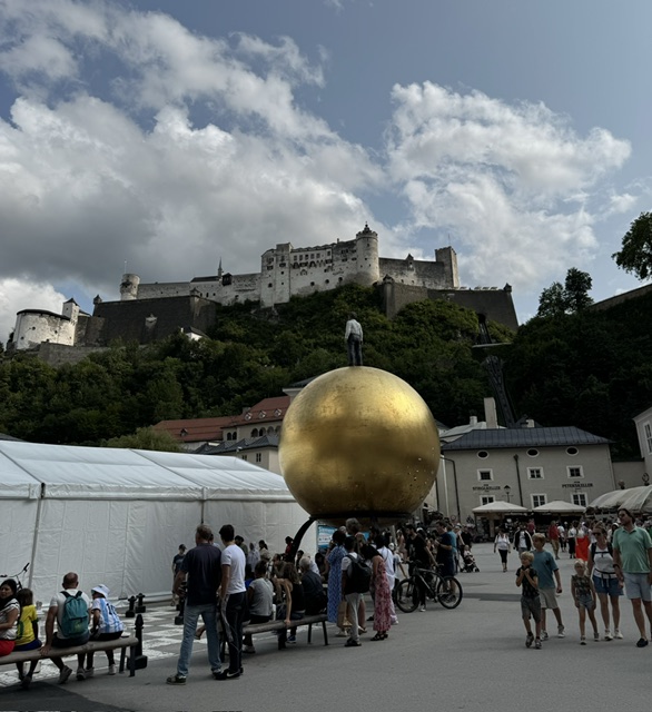 Of course, we’re here because of the Sound of Music (evidently Austrians do not get this avid interest, but finally decided to cash in on Americans’ crazy devotion), but oh, this city is so much more. It’s truly beautiful. We have a hotel in the old town, a Radisson – Altstadt Hotel – and it’s very old, redone, and the front desk people are lovely. The inscription on the paint outside says 1332 and 1992.