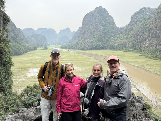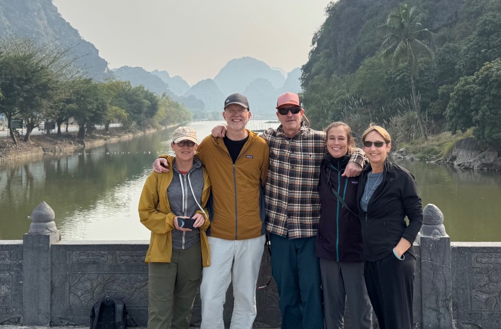 Today, we all relished breakfast again, such good food. Pat and Scott asked the server about the Vietnamese coffee that is a traditional drink. It’s very very slowly pressed strong coffee with condensed milk and poured over ice. They decided to try the coffee. They both loved it, thought it was a great addition to the coffee repertoire. Even Scott who doesn’t normally drink caffeine. Pat began slightly hallucinating because it was so strong and on top of the coffee he’d already drunk, the caffeine load was big. He and Scott then jittered their way out of the restaurant 🙂