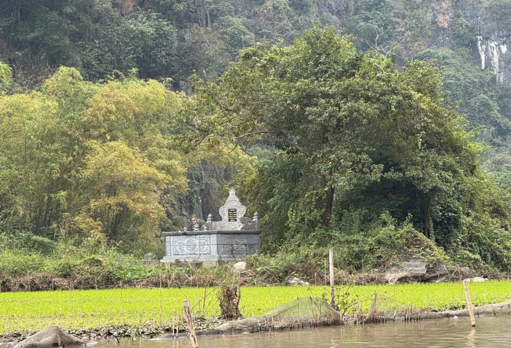 After almost 2 hours, we left the boats, thanking our guides, and walked along a path that passed an ancient small temple carved into the mountain. My photo translation of the stone said “The Tran Dynasty brought spring to the country after thousands of years of Chinese domination.” Thai Vi Lunh Tu was the leader of this dynasty who consolidated Vietnam and the various fighting factions to defeat the Chinese.