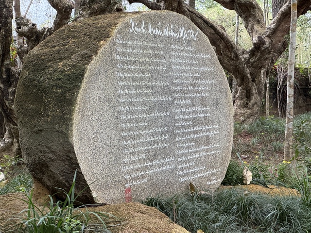 A slim chance was offered that we could go to the 4am chanting practice in the building where the monks practice, but our guide wasn’t able to find any monks and the buildings where he had gone before were locked behind a fence. We did see TNH’s burial tomb and the stone with a piece of his writing next to it. I would love to know what it says, but the script defied all of the translation apps. I’ll keep searching.