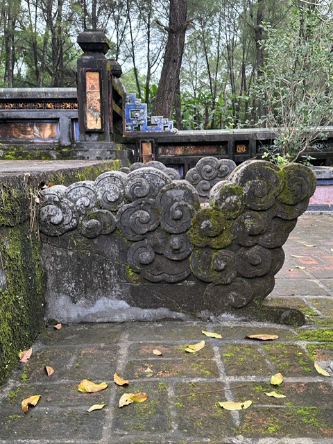 Next we visited the Khai Dinh Royal Tomb. This tomb was built for a king that had 132 wives and no children, maybe he had smallpox? But he wanted to have an incredible tomb. Khai Dinh was the penultimate emperor of Vietnam, from 1916 to 1925, and widely seen as a puppet of the French. It took 11 years to construct his flamboyant tomb from his designs, finishing after he died.
