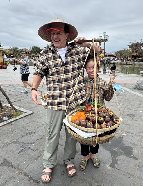 We then started exploring the old town of Hoi An. Hoi A was a trading post in the 2nd century and was an economic hub during the Cham Dynasties (7th–10th centuries). In the 16th century Hoi A became a major international trading center. It was a center for the spice trade and a settling point for Chinese merchants and soldiers. In the 18th century, the town was a top travel destination for Chinese and Japanese merchants. In the 1800’s many of the buildings were renovated with traditional methods. It’s now an UNESCO site. And filled with tourists. Every storefront targets tourists and only the pagodas are still used, though again, filled with tourists. And, yes, we were joining the throng!