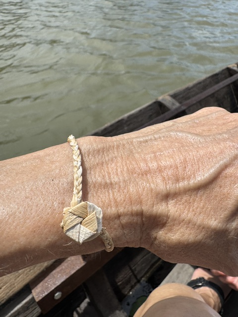 Basket and bracelets made from the water vines/reeds that were growing all around the delta and tributaries. We each got a bracelet – so pretty.