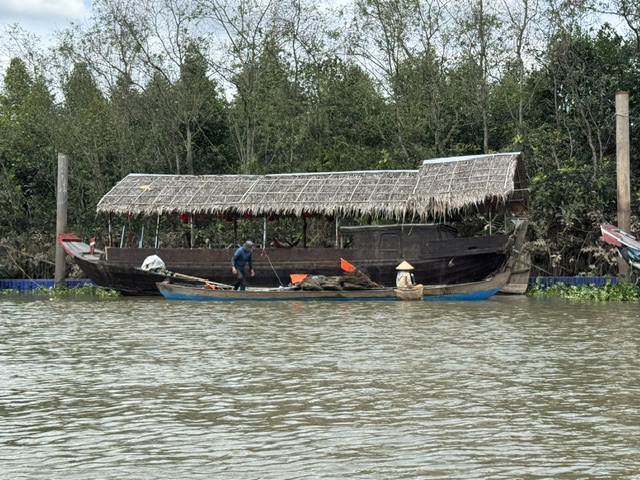 We then left the bikes and got into small boats (we’re starting to see a pattern) that were the same that the Viet Cong used to smuggle goods/weapons into Saigon. They were able to row into the reeds, lie down in their boats and be completely hidden.