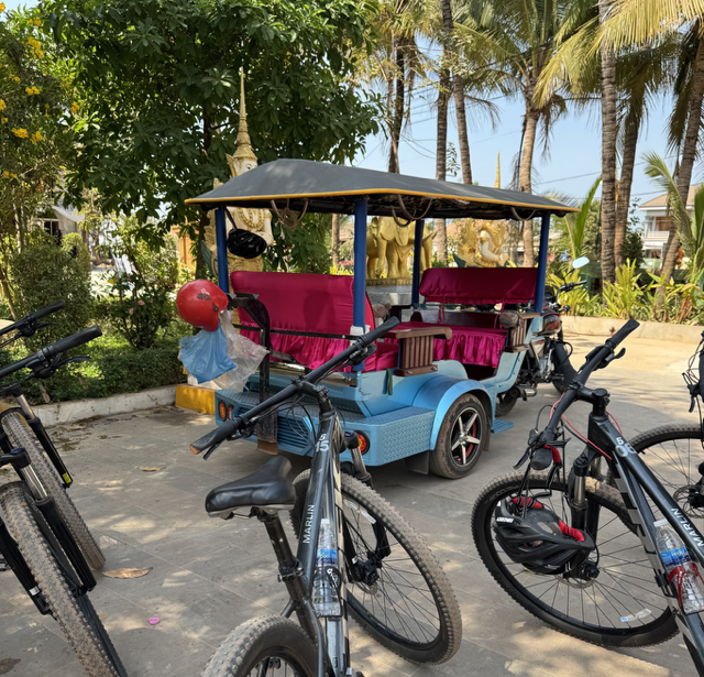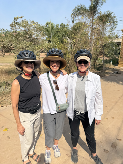 We ended this morning ride at a Buddhist temple. First we explored the cemetery. They have a practice here of burying a person, within 3, 5 or 7 days, depending on how long they need to gather enough money to feed the monks and people who come to the service. The body is then buried for a year. At the end of the year, it is cremated and the ashes are put into a stupa. If a family can afford a stupa, they have their own. If not, they can rent space from a wealthier family. The stupas have enough room, some just enough room, to walk around in prayer. Evidently you walk counter clockwise for a burial stupa and clockwise for a prayer stupa.