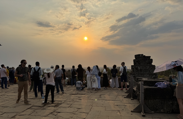 The Phnom Bakheng Temple, both Hindu and Buddhist had the form of a temple mountain. It was built in the 9th century. Incredible By now poor Holly was starting to get really sick from the heat and Kellie belatedly realized on our way back down from the temple visit that it was probably the beginnings of heat stroke. And we’d left Holly for an hour sitting below while we climbed up and down. We were definitely on auto and not thinking well in the heat. This last temple was where people went to see the sunset.