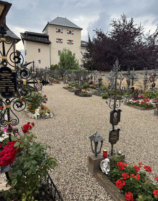 This monument had us stumped. We’re so conditioned to one way of thinking for WWII and this seemed to celebrate Germany. However, later on one of our hikes, I saw the same helmet painted on a dairy barn door and realized that it may have been more of an emblem of the Tyroleans who had died, no matter the side they were fighting on.
