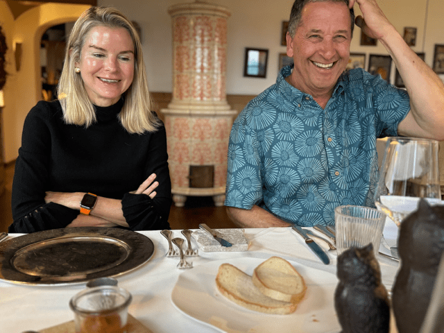 The end of our day was a group welcome cocktail/mocktail gathering and a great dinner at the hotel. Rick – laughing. We laughed a lot on this trip!