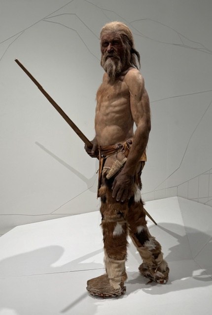 Here’s a Wikipedia synopsis: Ötzi”, a well-preserved natural mummy of a man from about 3350 BC (53 centuries ago).This is the world’s oldest natural human mummy, a wet mummy, as opposed to mummies preserved by dry conditions in a desert environment. It has offered an unprecedented view of Copper Age European culture. The world’s oldest complete copper age axe was found among his extensive equipment, which also comprised a rather complex fire-lighting kit and a quiver loaded with 12 arrows, only two of which were finished, clothing, and a flint knife complete with its sheath.